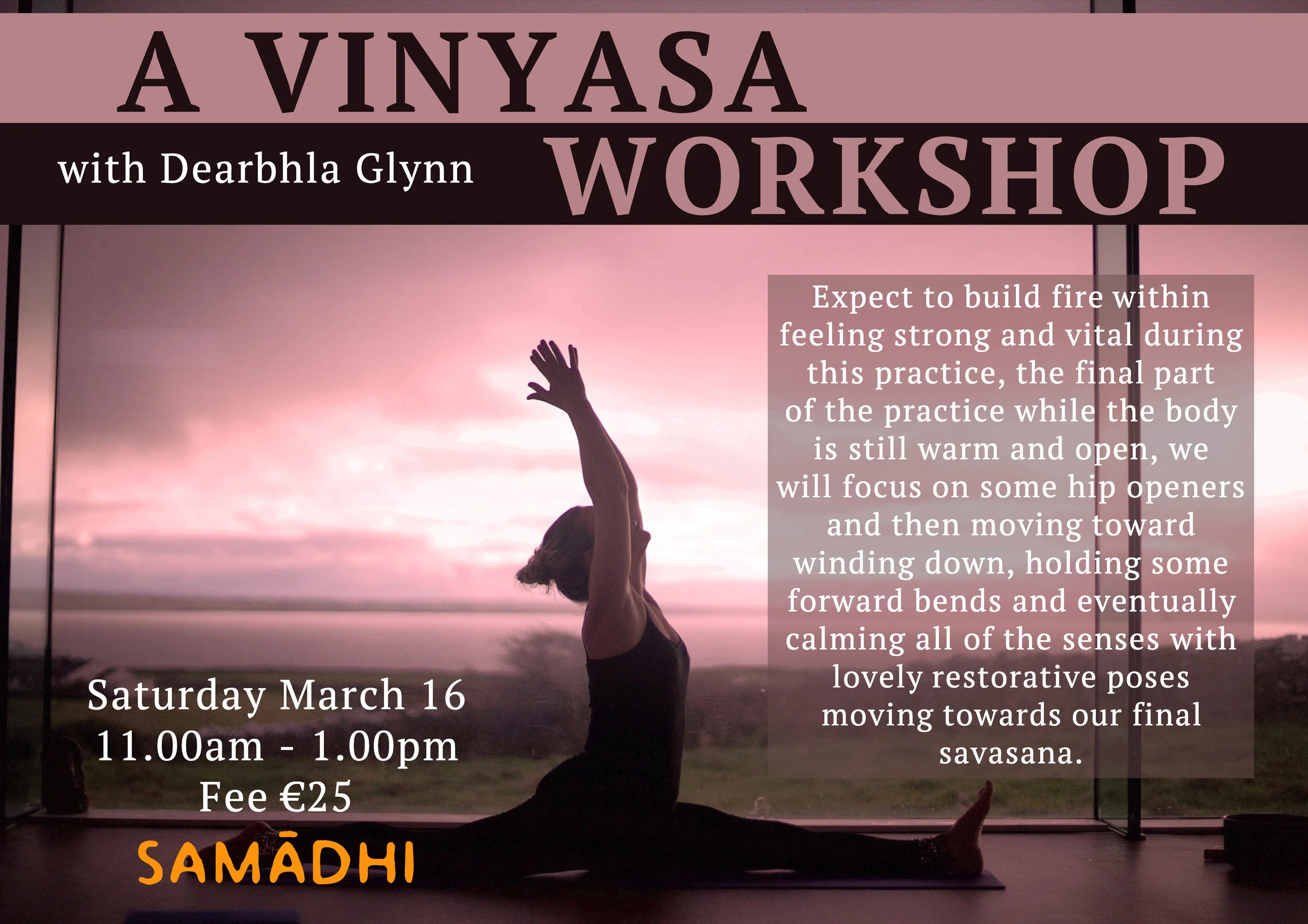 Dearbhla will lead a strong slow Vinyasa practice focusing on developing strength and flexibility. While moving mindfully through each asana we will hold poses for a little longer to strengthen and also awaken the muscles and open up the whole body.